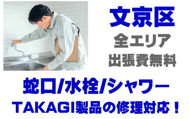 文京区で水栓メーカーTAKAGIの修理業者をお探しなら当社までお気軽にお問い合わせください。蛇口の水漏れ、シャワーの故障などタカギ製に関するトラブルなら何でもご相談ください。
